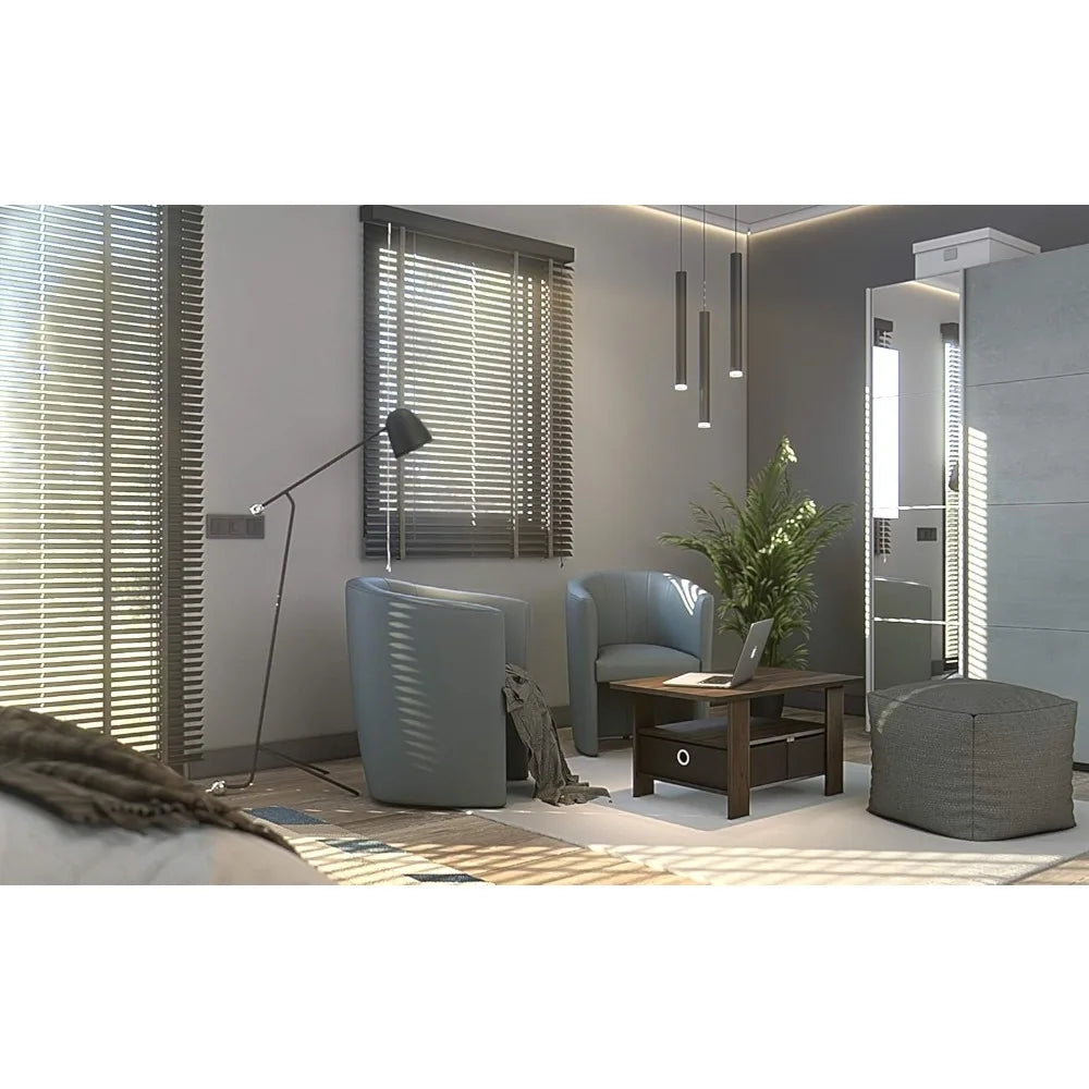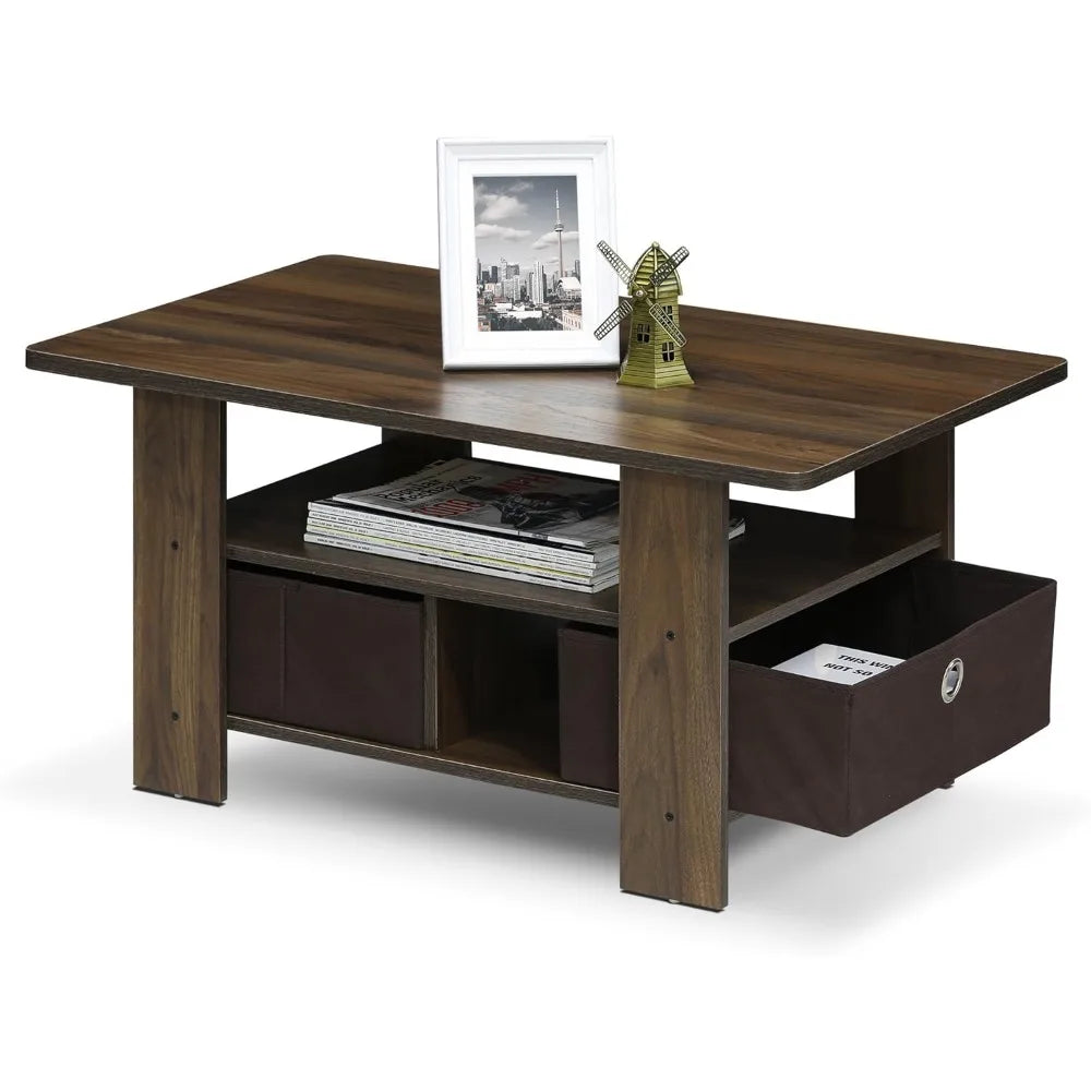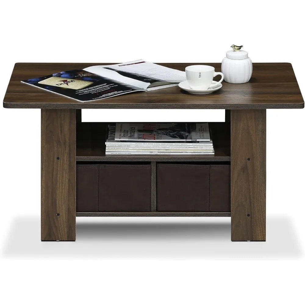 - Compact stylish design: petite size Coffee Table with storage bin and shelf, suitable for small spaces
