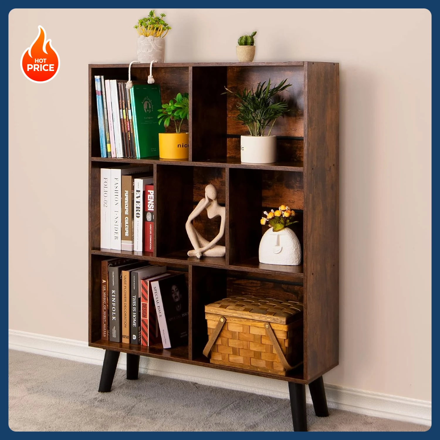 [VibrantMid-Century Modern Bookshelf] The 3 tier bookshelf is brought to life by a special mysterious brown and crisscross partition design. The unique appearance allows you to enjoy both retro and modern styles. Reshape your storage space with ’s charming vintage brown modern cube bookshelves, making your home/office/school more elegant and stylish.