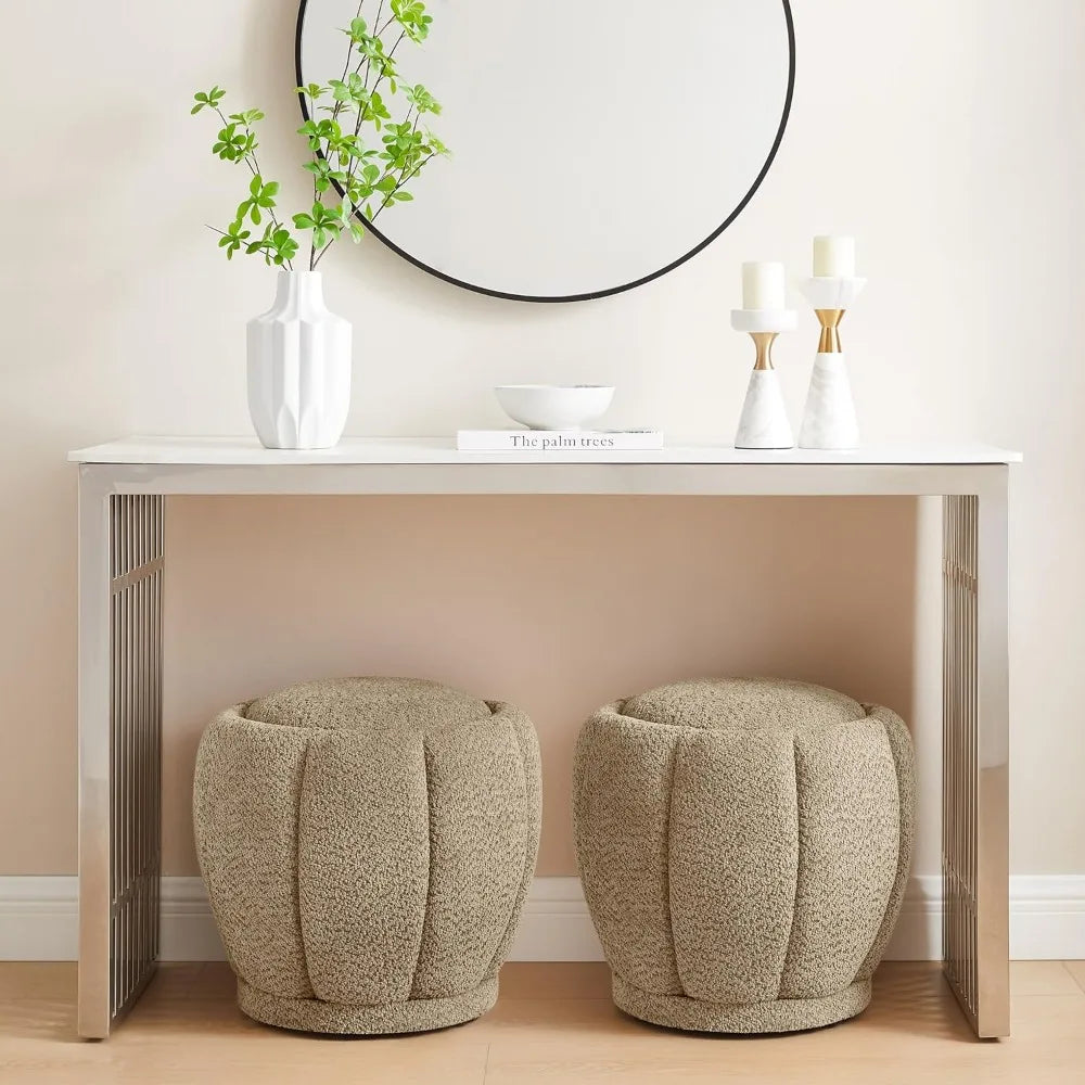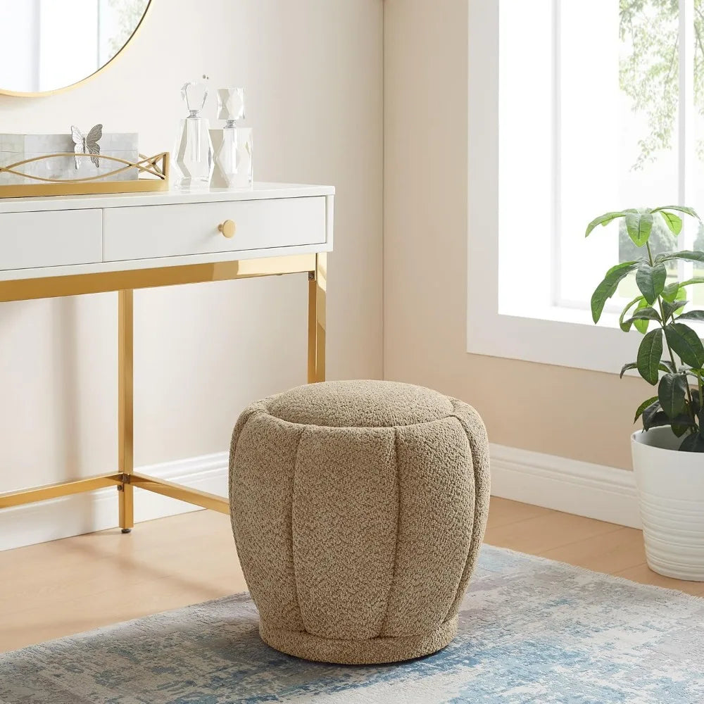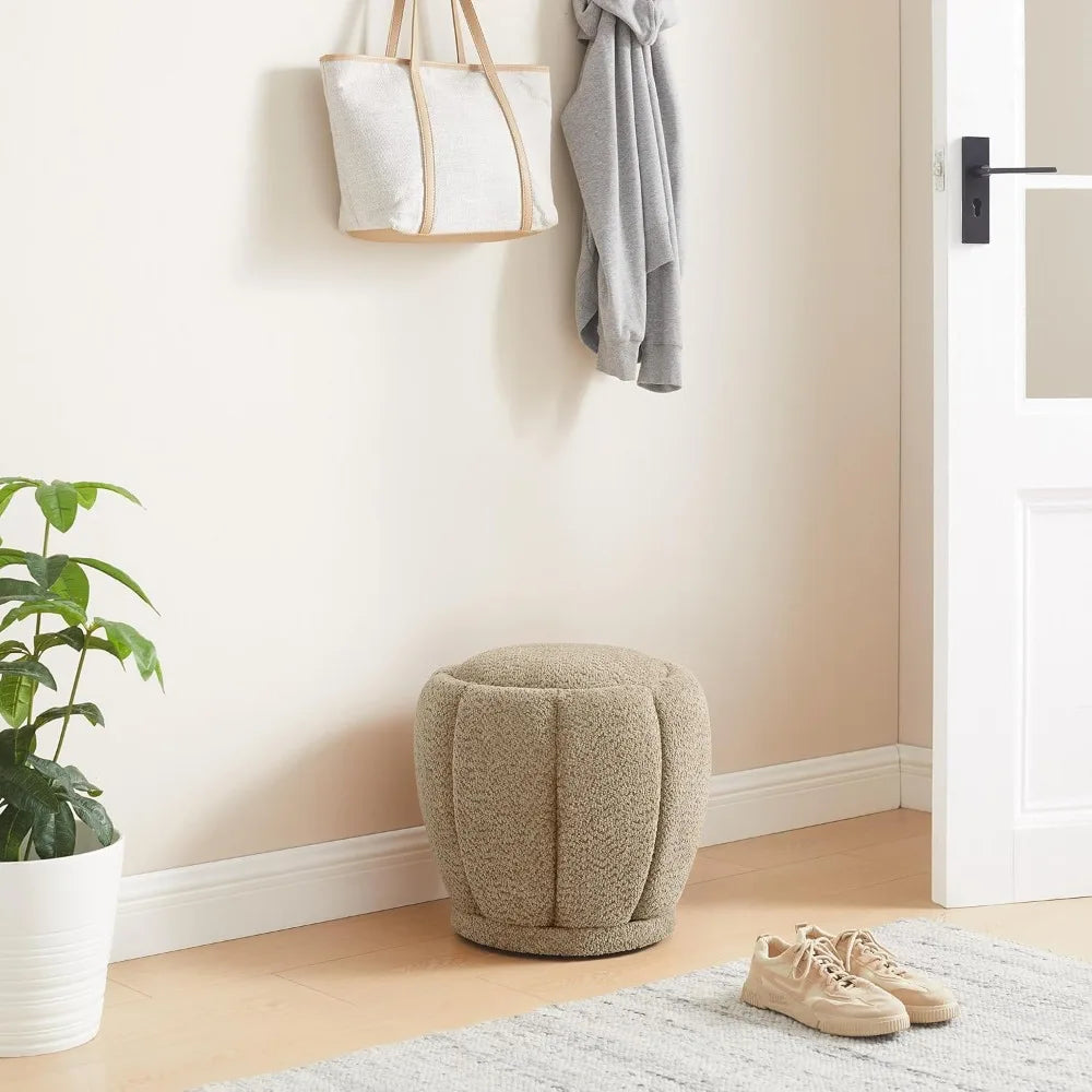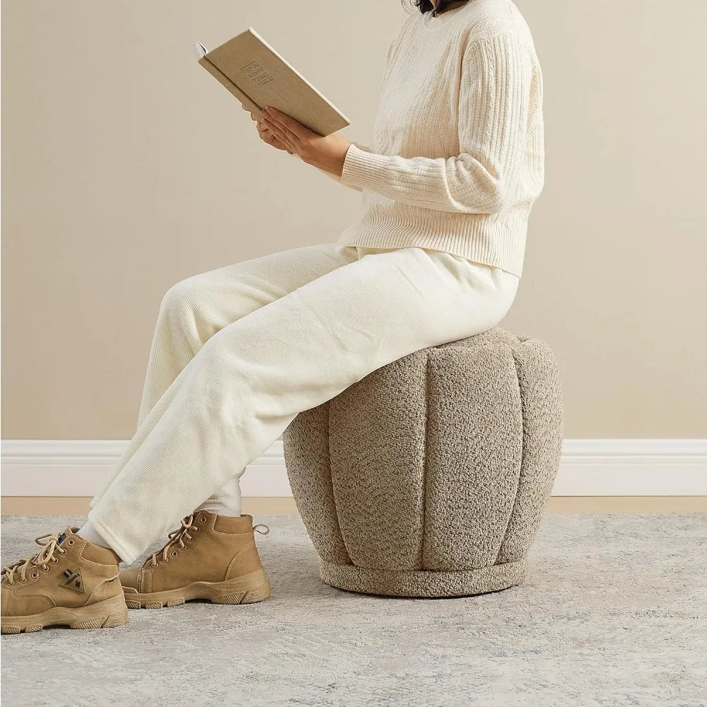 This multi-functional ottoman, inspired by the concept of flowers in bud, symbolizes the anticipation of a better life. It features a 360-degree rotation and is covered in thick sponges and soft boucle fabric, making it ideal for households with young children. Versatile in use, this ottoman can serve as a shoe changing stool at the entrance, a footstool in the living room, or a vanity chair in the bedroom. It pairs perfectly with a swivel chair, allowing for a relaxed seating experience with both seat and foot rotation. The footstool is designed to support up to 220 pounds and is easy to clean; simply wipe with damp paper towels and let it air dry. We offer a 30-day free exchange and return policy, provided the product is in a condition suitable for resale. For any inquiries, whether pre-sale or post-sale, our team is committed to responding within 24 hours.
