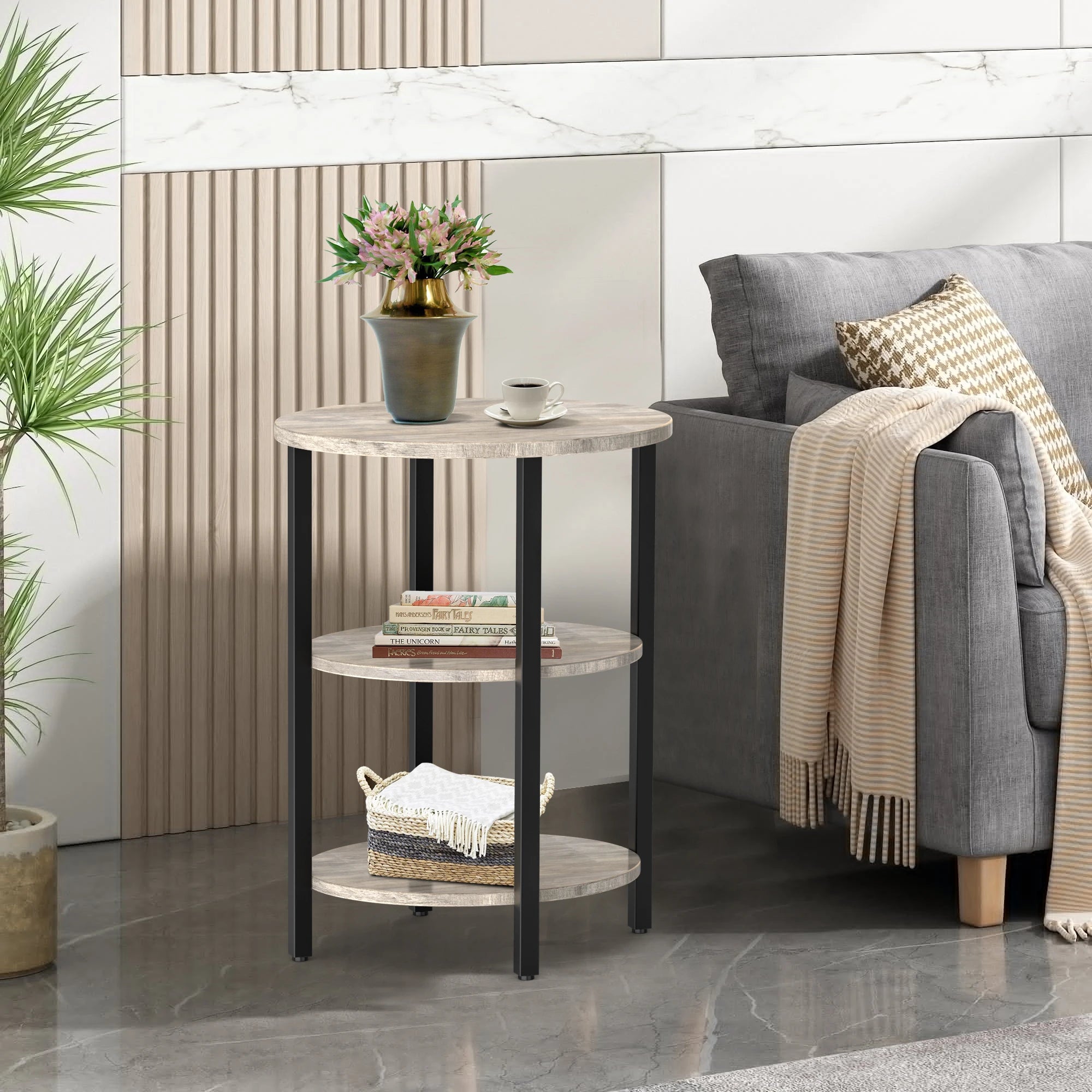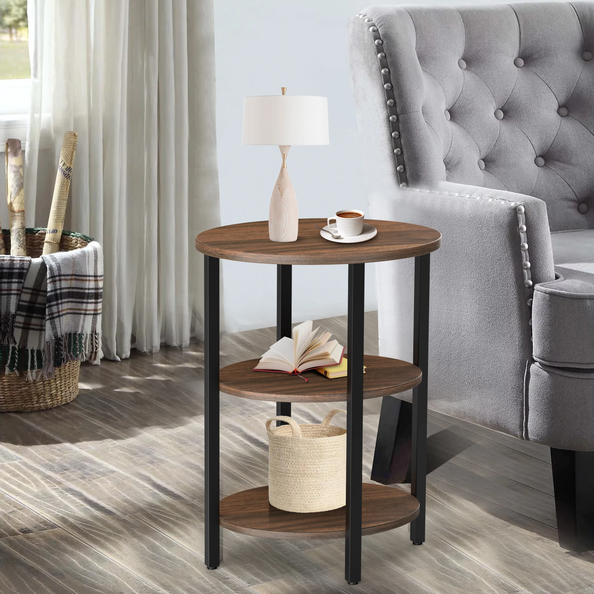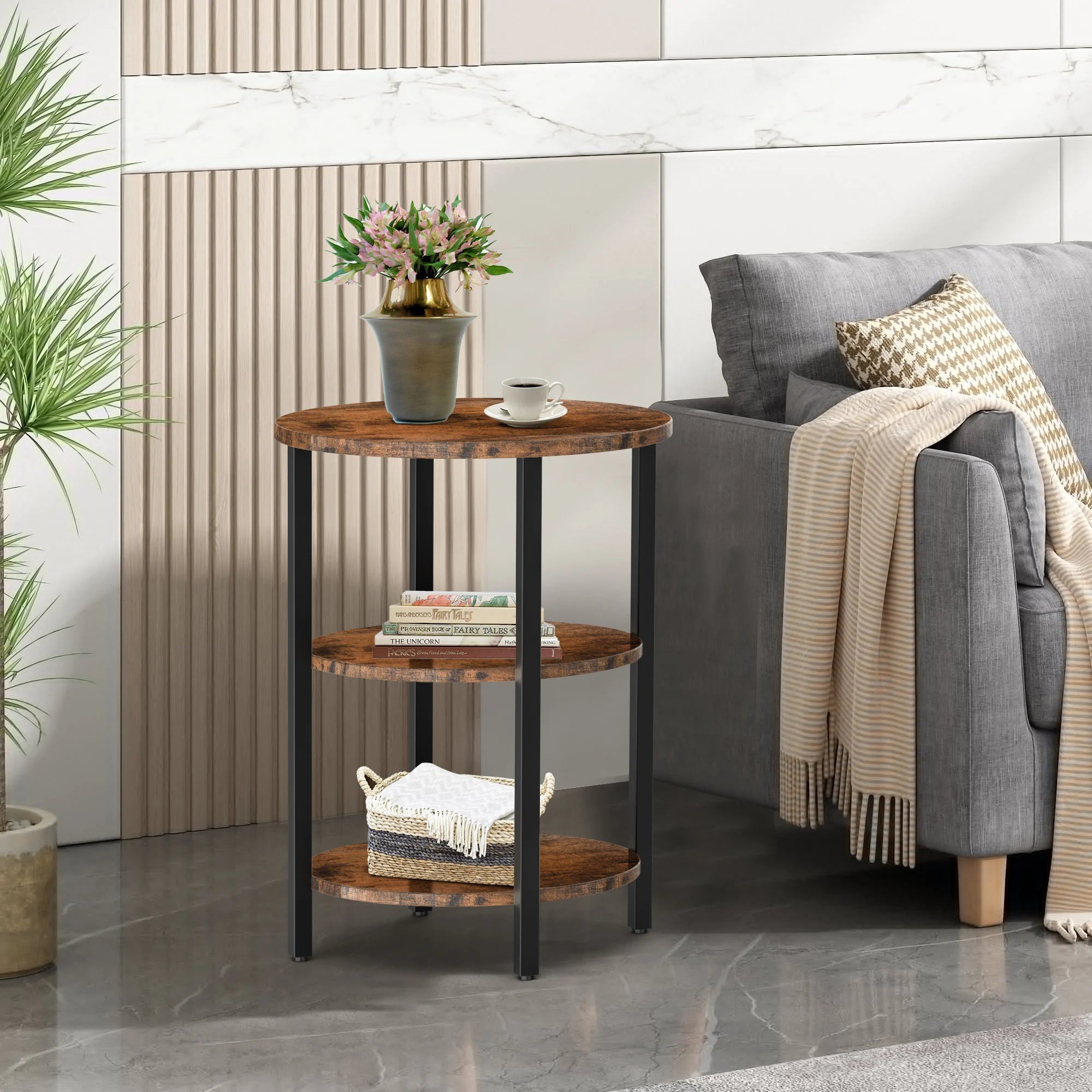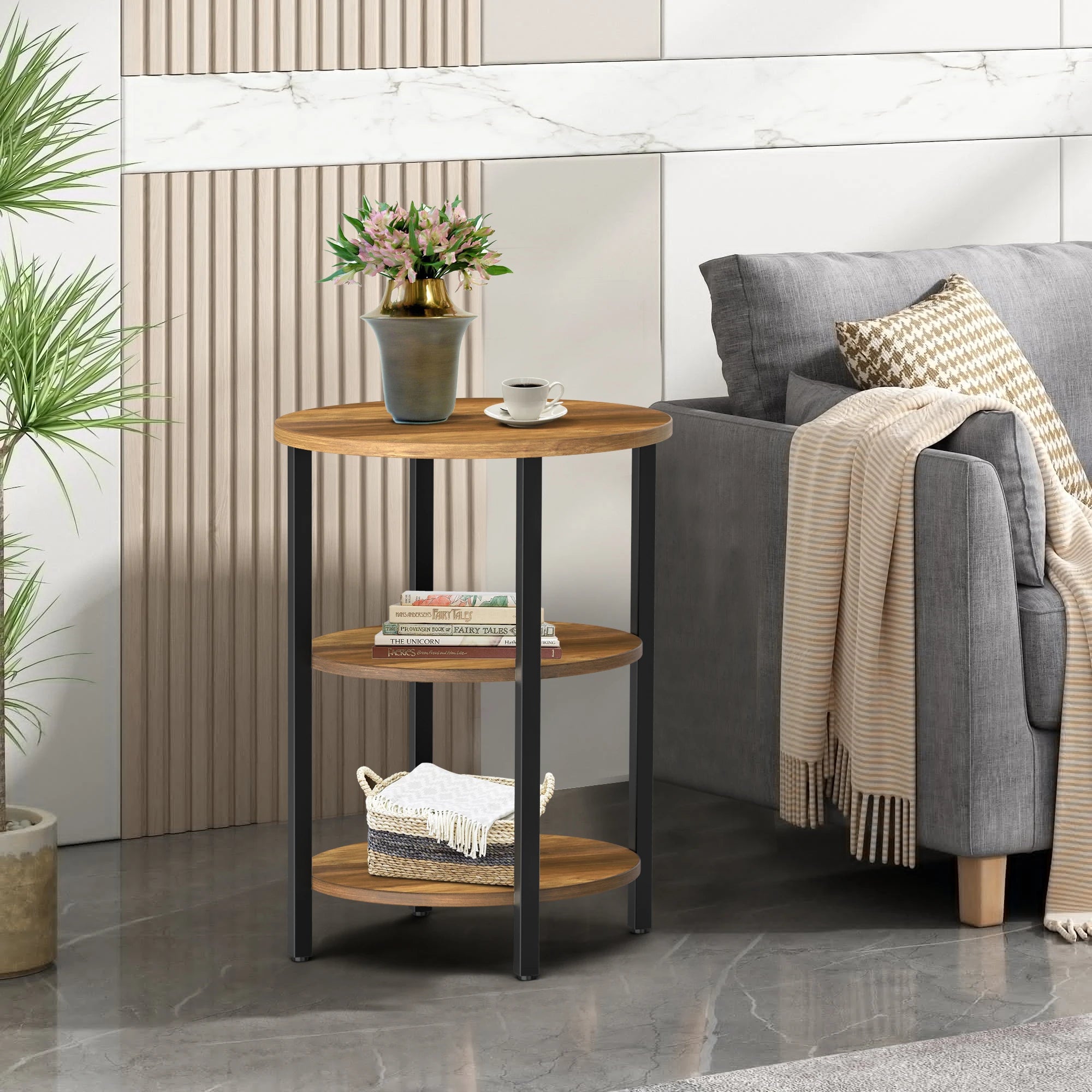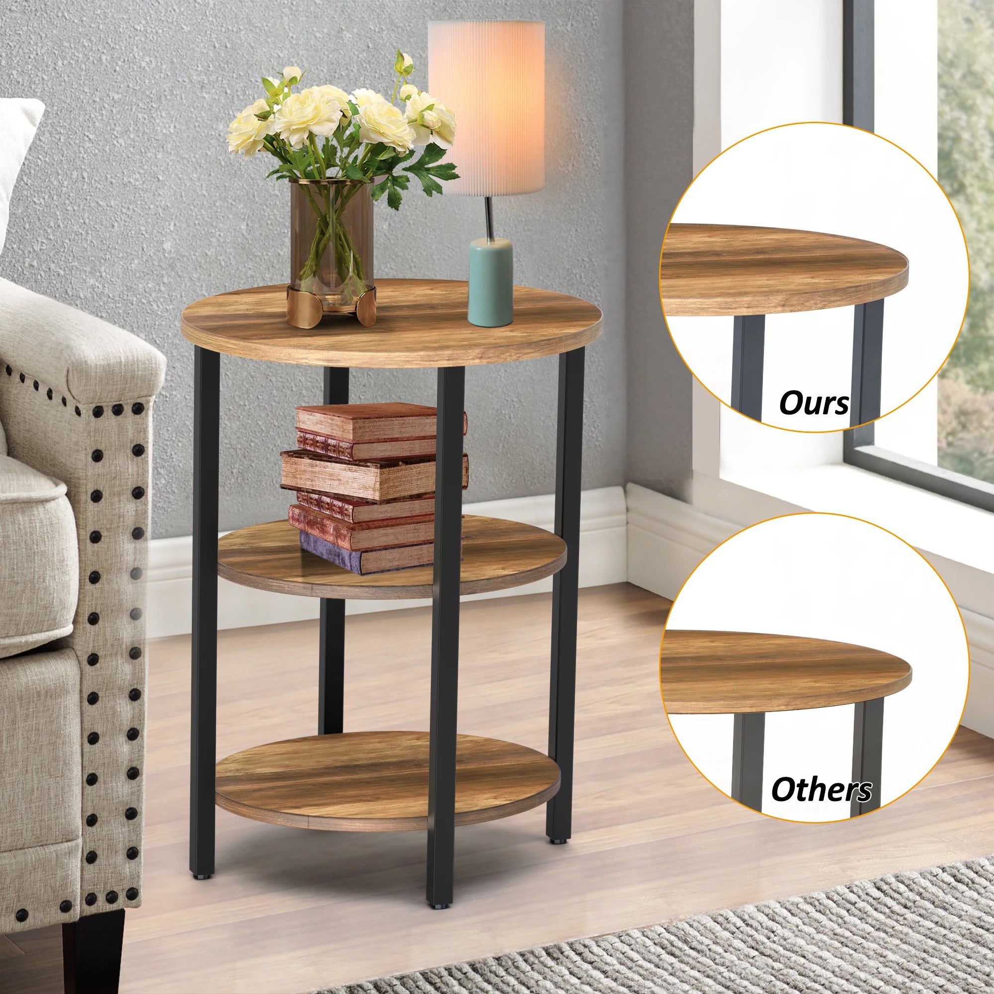 【Versatile Storage】 The rustic tall end table comes with 3-tier storage shelves, offering ample space to store and display your decorative lamps, drinks, phone, and more. It's perfect for the living room, office, or any small space where you need extra storage and style.